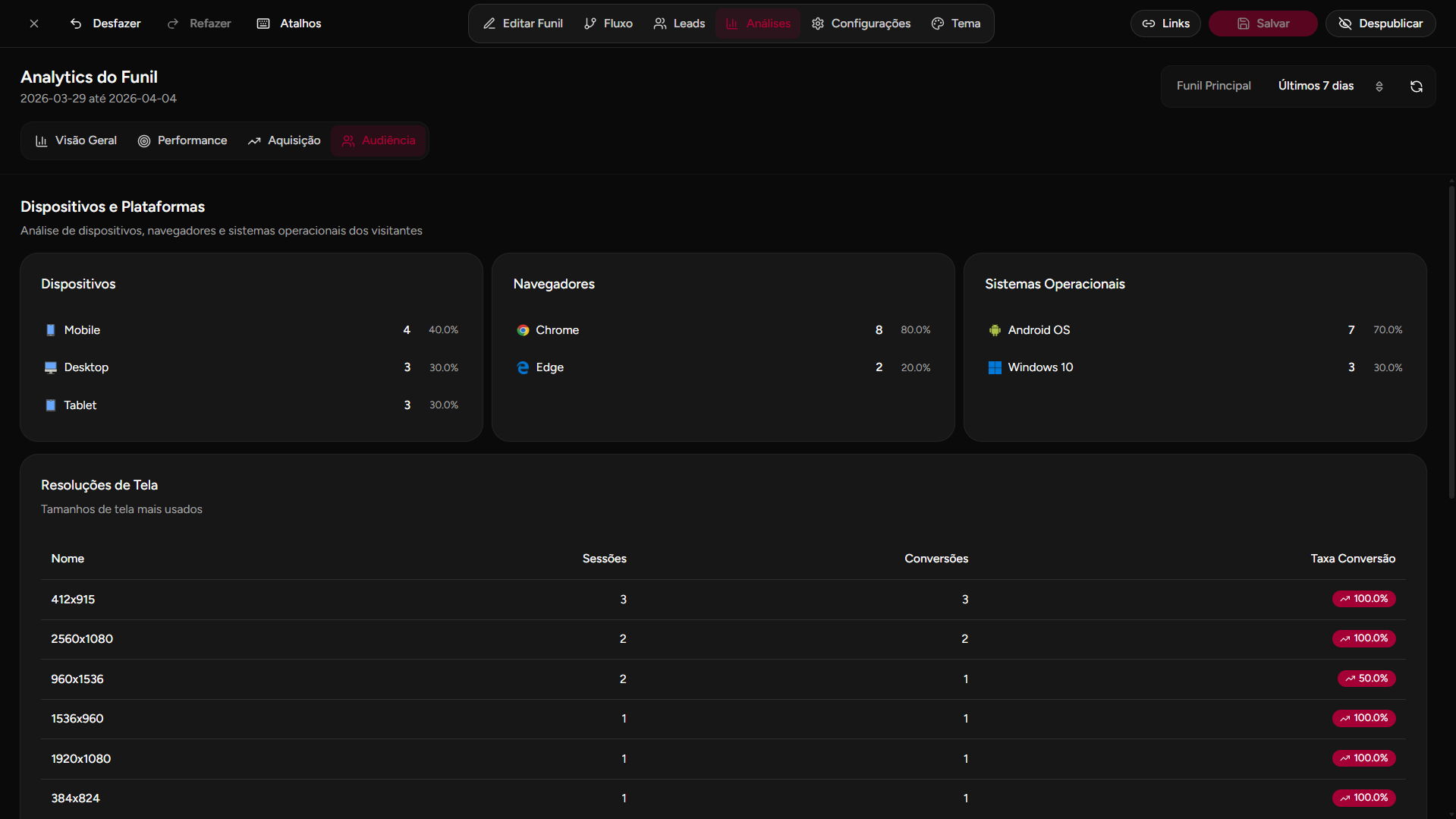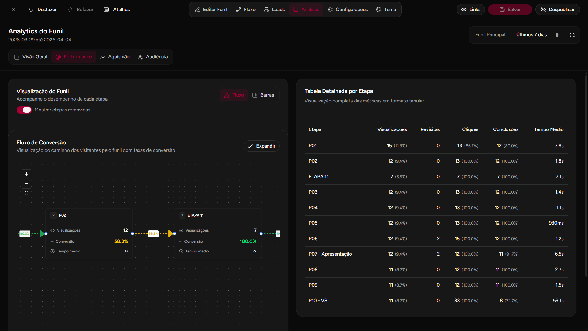 Entenda onde o funil converte, onde perde usuarios e o impacto real de cada campanha para otimizar com seguranca.